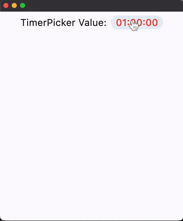 It can show a countdown duration with hour, minute and second spinners. The duration is bound between 0 and 23 hours 59 minutes 59 seconds.